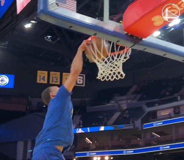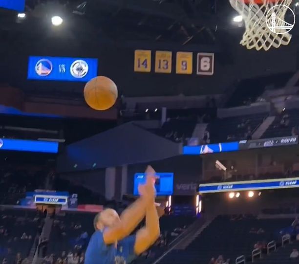 雷速體育10月18日訊 NBA季前賽繼續(xù)進(jìn)行,勇士將在今天的季前賽收官戰(zhàn)中主場迎戰(zhàn)快船。賽前熱身環(huán)節(jié),庫里展示花活兒。 他以一個排球式助攻,讓自己完成了自拋自扣。