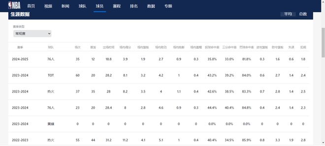上賽季,他代表76人出戰(zhàn)35場(chǎng)常規(guī)賽,場(chǎng)均可得到3.9分1.9籃板2.7助攻。