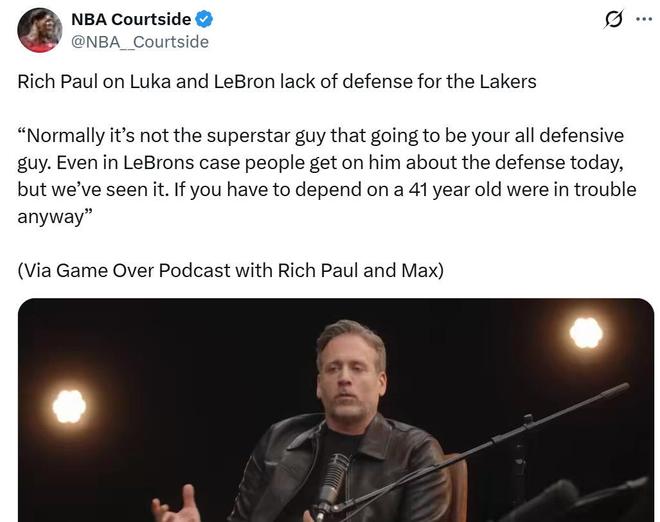 作為其經(jīng)紀人的里奇保羅則在節(jié)目中公開為詹姆斯辯解道:“如果一支球隊還想依靠41歲的老將來防守,那么這支球隊肯定是遇到了大麻煩。”