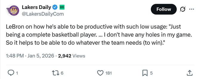 相比于拿下勝利戰(zhàn)績提升,更加讓湖人隊(duì)開心的是具體比賽內(nèi)容與球員表現(xiàn),紫金軍團(tuán)可謂是一口氣迎來5大喜訊。