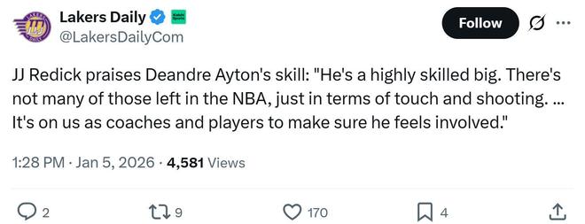 這并不是拉拉維亞第一次爆發(fā),本賽季他已經(jīng)4次拿下20+得分表現(xiàn),期間湖人隊(duì)4戰(zhàn)全勝。