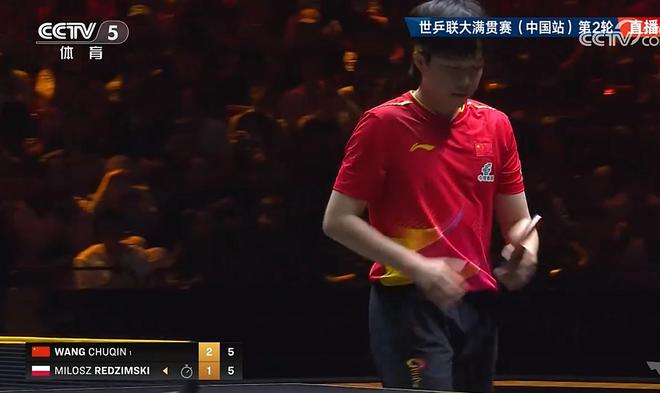 10月1日,WTT中國大滿貫?zāi)袉?/16決賽,王楚欽在先勝兩局的情況下,被對手連追兩局扳平。最終以3-2(11-7、11-4、10-12、8-11、11-8)險勝波蘭的雷德齊姆斯基晉級16強,下一輪對陣塔卡vs安宰賢的勝者。