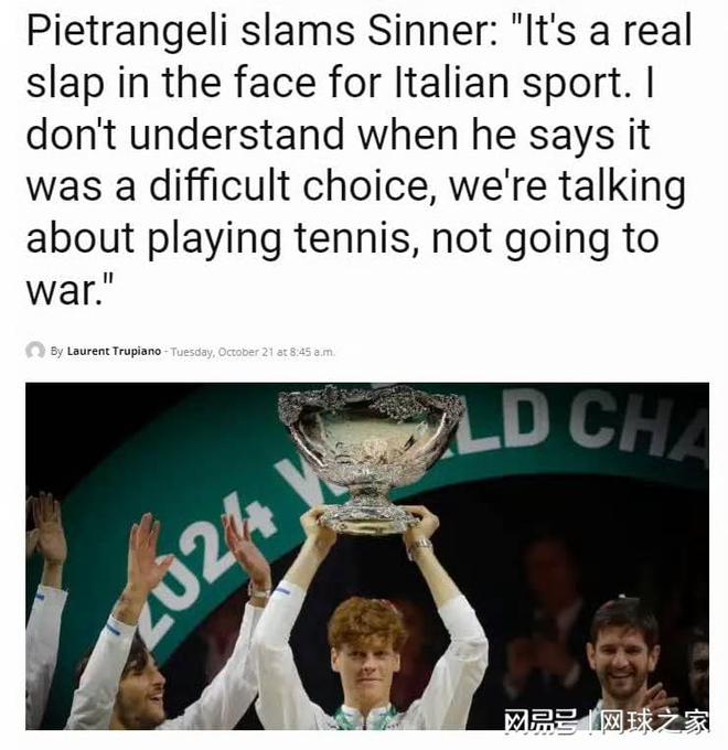 辛納退出戴杯遭批被金錢支配忘記初心,名宿回懟,退賽是他的自由