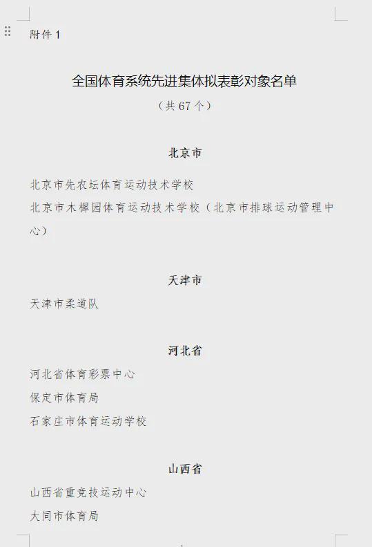 據(jù)國家體育總局人事司網(wǎng)站消息,昨天(10月27日),全國體育系統(tǒng)先進集體和先進個人評選表彰工作領(lǐng)導(dǎo)小組辦公室發(fā)布“關(guān)于全國體育系統(tǒng)先進集體和先進個人擬表彰對象的公示”:根據(jù)全