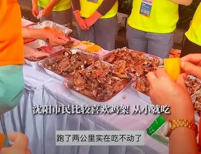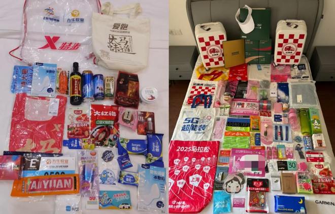 為了能回應(yīng)跑者和贊助商的熱情(鈔能力),各大城市各顯神通。最出圈的方式是把馬拉松變成超長(zhǎng)流水席,力求讓跑者跑完胖三斤,還允許連吃帶拿,因此不少人感慨:跑一場(chǎng)馬拉松,最累的是腮幫子。