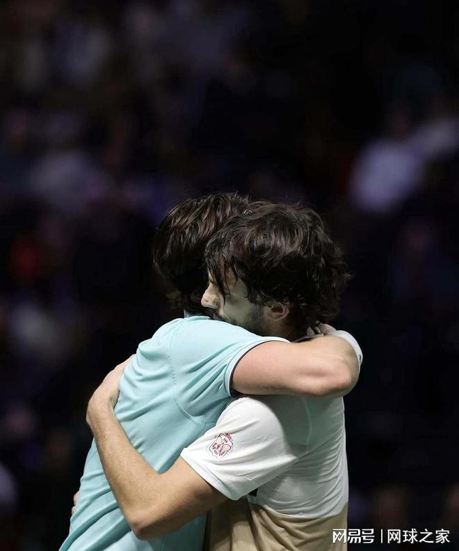 當(dāng)最后一分結(jié)束,球網(wǎng)兩邊呈現(xiàn)出的畫面令人動容。兩位球員如在上海時一樣,來到網(wǎng)前緊緊相擁。這是血緣與親情最直接的體現(xiàn)。然而,細(xì)心的觀眾不難發(fā)現(xiàn),表哥林德克內(nèi)西的神情中難掩失落與黯淡。