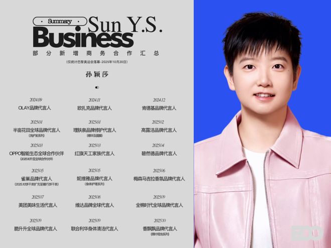 巴黎奧運(yùn)會(huì)后,平均算下來(lái)幾乎每個(gè)月,孫穎莎都至少會(huì)官宣一個(gè)新代言。放在過(guò)去,這樣高頻的官宣頻率很難讓人聯(lián)想到運(yùn)動(dòng)員,尤其是乒乓球這類(lèi)在奧運(yùn)期間才能迎來(lái)集中曝光的項(xiàng)目???/p>