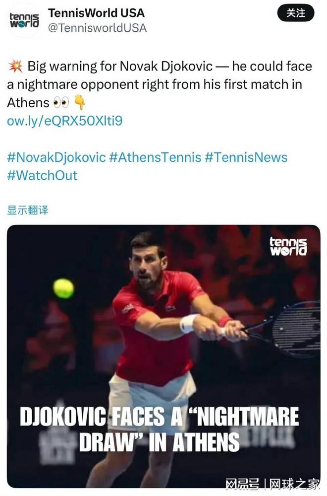 德約回應(yīng)搬去雅典原因,今晚首秀戰(zhàn)噩夢選手能否打破不勝魔咒?