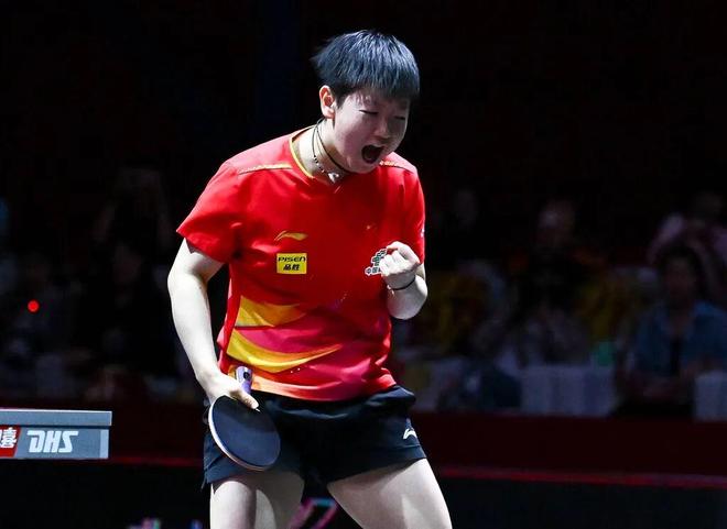 “我喜歡乒乓球,好像就是因?yàn)槲液芟矚g打乒乓球?!庇?xùn)練縱然疲憊且枯燥,但孫穎莎始終樂在其中。純粹的熱愛驅(qū)動(dòng)著她,也轉(zhuǎn)化為她在賽場(chǎng)上永不言敗的體育精神。無(wú)論是2024年釜山世乒賽女團(tuán)決賽中,在國(guó)乒1:2落后日本時(shí)獨(dú)砍兩分實(shí)現(xiàn)逆轉(zhuǎn),還是去年WTT中國(guó)大滿貫女單決賽中,濕透的汗水在椅背上拓出“CHINA”印記的瞬間,“孫穎莎精神”都在激勵(lì)著賽場(chǎng)之外的無(wú)數(shù)普通人。
