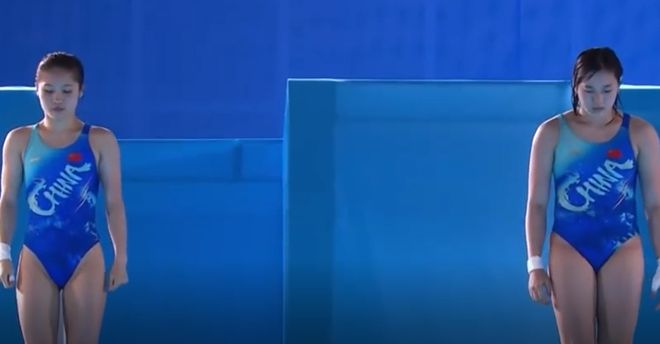 陳芋汐和掌敏潔在預(yù)賽中得到339.06分,有效分都在8.0以上,領(lǐng)先第二名四川隊(duì)的李蕊汐/盧為29.16分。
