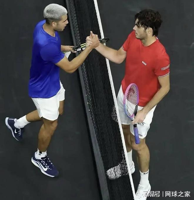 不過,弗里茨也就是這么說說而已,真要上場迎戰(zhàn)阿爾卡拉斯,還是毫不含糊,敢打敢拼。這不,阿爾卡拉斯剛在2025年9月美網(wǎng)奪冠、重返世界第一,兩人就在同月的拉沃爾杯表演賽上遭遇。面對新任世界第一阿爾卡拉斯,弗里茨毫不畏懼,6:3 6:2,干凈利落地兩盤完勝阿爾卡拉斯,為世界隊(duì)最后奪取拉沃爾杯冠軍立下汗馬功勞。