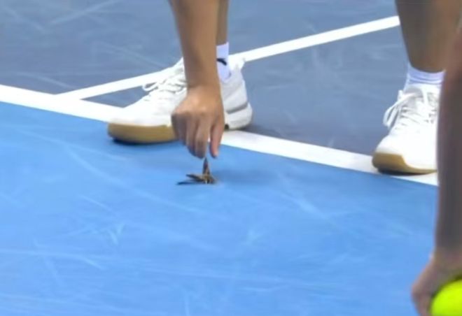 11月12日,第十五屆全運會網(wǎng)球比賽在珠海舉行,比賽期間一只昆蟲闖入賽場,現(xiàn)場工作人員迅速處置。隨后,有消息稱“3-4厘米的大型蟑螂闖入賽場”“大蟑螂導(dǎo)致比賽中斷”,引發(fā)熱議。14日,南都記者獲悉,闖入賽場的昆蟲實為飛蛾。