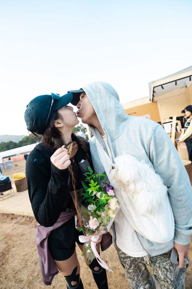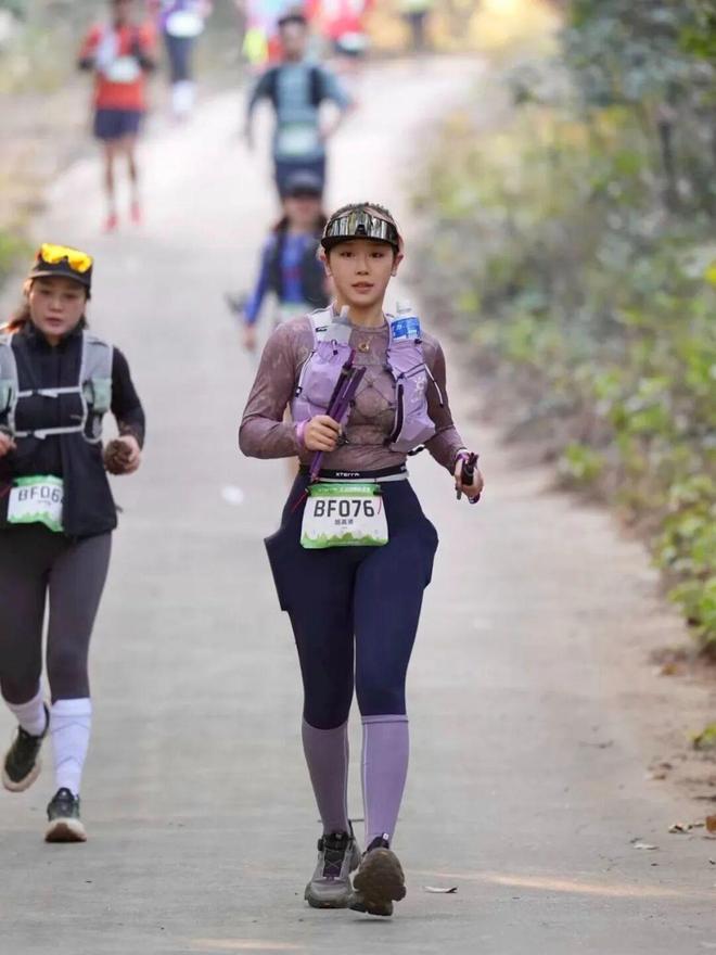 比賽當天,“興奮”貫穿了吳軼涵整個賽程:既有首次嘗試的躍躍欲試,也有對于后面風景的期待。尤其在穿過樹林跑到山頂?shù)拇笕缫馐ゾ?,抬頭看到陽光照射在觀音像身上的那一剎那,讓她只覺震撼與驚艷。除了一路的美景,吳軼涵還在賽中遇見了一件讓她忍俊不禁的事——有一位帶邊牧參賽的男生,因為邊牧跑得特別快,導致他一路上都在找狗,“有人看到一條狗嗎?”