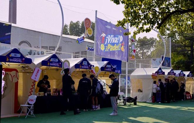 江灣國際板式網(wǎng)球中心室外草坪上的“Viva Padel西班牙集市”,成為充滿活力的潮流聚集地?,F(xiàn)場不僅提供地道的LA ENCINA伊比利亞火腿、奧蘭小紅帽桑格利亞和熱紅酒、歪馬送酒等西班牙風味美酒小食,也匯聚了如JSC、吾島酸奶、BUND FIVE外灘5號咖啡館等健康生活方式品牌,更有潮流運動社區(qū)CrossElite、上海勇士美式橄欖球隊前來助陣。這里既是能量補給站,也是連接文化、品牌與消費者的社交空間。
