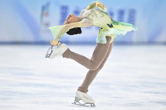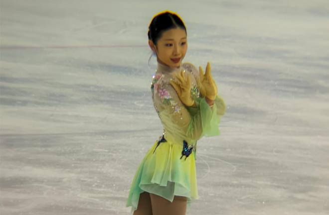 2025全國花樣滑冰錦標(biāo)賽女單自由滑比賽中,14歲的金書賢在《梁?!返呐錁仿曋?,化身為一只美麗的蝴蝶翩翩起舞,她奉獻(xiàn)了2025年個(gè)人最完美的一次演繹,在自由滑節(jié)目拿到139.77分的高