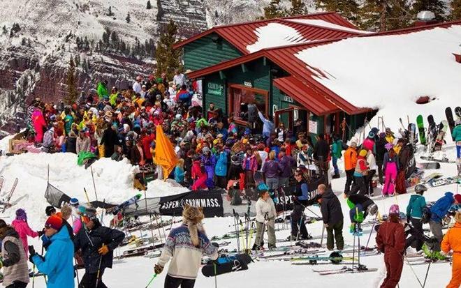只要踏進(jìn)阿斯彭著名的“云九”酒吧就能體會(huì)到了??諝庵袊姙⒌南銠?,站在桌子上扭動(dòng)的軀體,頭頂震耳欲聾的音樂(lè)……這些人根本就不是來(lái)滑雪的,他們只是在找一個(gè)盡情放縱的場(chǎng)合。