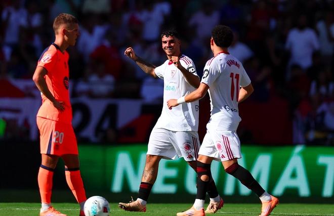 第37分鐘,孔德在中場(chǎng)丟球,塞維利亞快速打反擊,巴爾加斯橫傳,助攻羅梅羅在中路搶點(diǎn)得分。巴薩0-2落后。