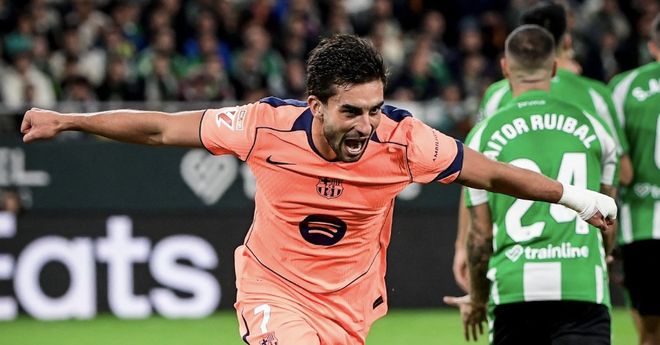 第13分鐘,巴德吉下底傳中,費(fèi)蘭凌空側(cè)鉤破門。第31分鐘,佩德里送直塞,巴德吉禁區(qū)內(nèi)抽射近角破門。第40分鐘,費(fèi)蘭遠(yuǎn)射被擋了一下有個(gè)變線,皮球旋進(jìn)了球門遠(yuǎn)角,完成帽子戲法。這樣,巴薩上半場(chǎng)4-1領(lǐng)先貝蒂斯。