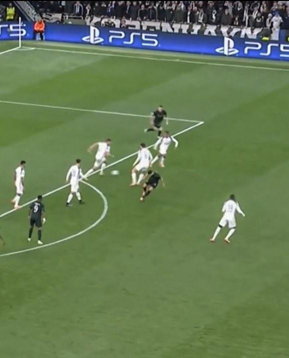 帕利尼亞歐冠生涯的首次助攻就是我們常說(shuō)的“世紀(jì)助攻”。當(dāng)時(shí),帕利尼亞在本方半場(chǎng)斷球,并且將球護(hù)給范德芬,然后就發(fā)生了接下來(lái)的這一幕。