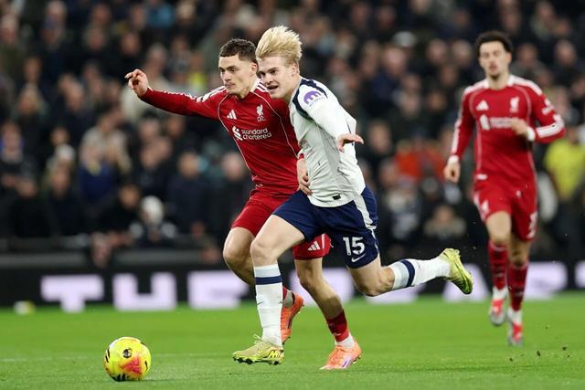 熱刺與利物浦在過往的英超賽季里,曾多次奉獻(xiàn)進(jìn)球大戰(zhàn)。上賽季,紅軍曾以5-1橫掃熱刺,最終捧起英超冠軍;而北倫敦球迷則對2017年的一場比賽記憶猶新,當(dāng)時哈里·凱恩與孫興慜聯(lián)手率隊(duì)4-1擊敗利物浦。然而這一次,對熱刺而言卻是一場“反向經(jīng)典”:兩張紅牌、兩次被維卡里奧從球網(wǎng)里撿球,最終讓斯洛特的小幅反彈得以延續(xù),九人熱刺1-2主場飲恨。
