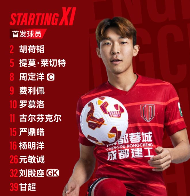這一輪主場迎戰(zhàn)河南隊,成都蓉城在首發(fā)上派出了32-劉殿座、2-胡荷韜、5-提莫-萊切特(F)、11-古爾芬克爾(F)、26-元敏誠、8-周定洋、10-羅慕洛(F)、15-嚴(yán)鼎皓、16-楊明洋、39-甘超、9-費利佩(F)的陣容。