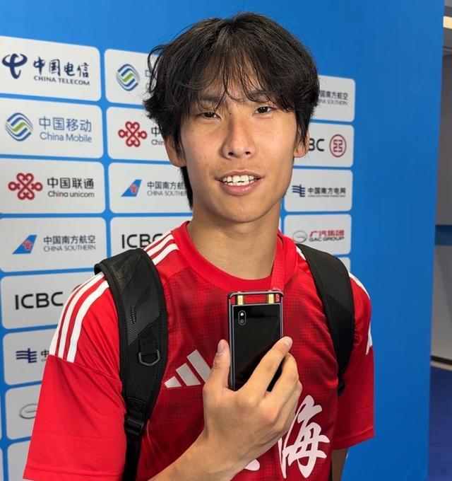 本場比賽打入制勝進(jìn)球的李新翔賽后接受采訪(金亦辰攝)